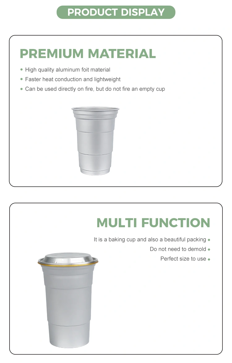 सामान्य कंटेनरों के विपरीत, यूंचू 16 ऑउंस डिस्पोजेबल कस्टम एल्यूमीनियम फ़ॉइल ड्रिंक कप विशेष रूप से विशिष्ट परिदृश्यों में ब्रांडों के लिए पैकेजिंग समाधान प्रदान करने के लिए डिज़ाइन किया गया है। अपने कॉम्पैक्ट आकार (460 मिलीलीटर) के साथ, यह अनुकूलन योग्य डिस्पोजेबल 16 ऑउंस कस्टम एल्युमीनियम फ़ॉइल ड्रिंक कप सिंगल-सर्व इंस्टेंट पेय पदार्थों की खपत की आदतों को पूरा करता है। यह 16oz कस्टम डिस्पोजेबल एल्युमीनियम फ़ॉइल पार्टी कप अपने व्यावहारिक कार्यों से परे, टेकआउट, बाज़ार या कैंपिंग गतिविधियों के लिए विशेष रूप से उपयुक्त है। मुख्य रूप से, यह ब्रांड वैल्यू को बढ़ावा देने में मदद कर सकता है।