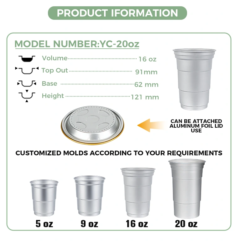 • 16 ऑउंस डिस्पोजेबल कस्टम एल्युमिनियम फॉयल ड्रिंक कप16 ऑउंस डिस्पोजेबल कस्टम एल्युमिनियम फॉयल ड्रिंक कप