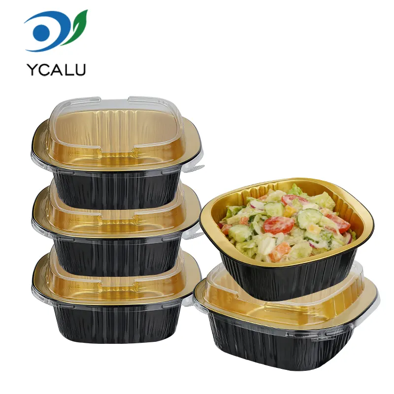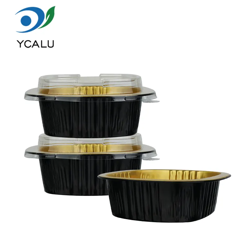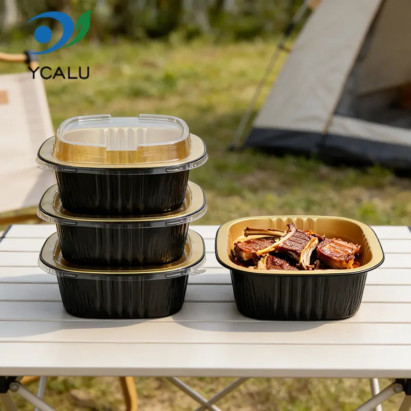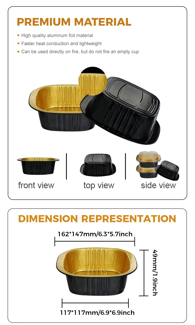 डिस्पोजेबल बाइनॉरल स्क्वायर बॉक्स ब्लैक गोल्ड एल्युमिनियम फॉयल कंटेनर