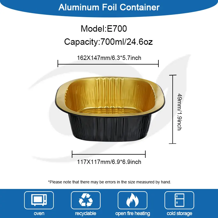 यूंचू एल्युमीनियम फॉयल सप्लायर के डिस्पोजेबल डबल-ईयर स्क्वायर बॉक्स ब्लैक गोल्ड लाइट-वॉलड एल्युमीनियम फॉयल कंटेनर में एक चौकोर आकार का डिज़ाइन, पूर्ण स्थान उपयोग, गोल और चिकने कोने, कोई तेज गड़गड़ाहट नहीं है, और उपयोग करने के लिए सुरक्षित है; विचारशील डबल-ईयर डिज़ाइन, एर्गोनोमिक, इंसुलेटेड और एंटी-स्केलिंग, लेने में आसान, भले ही इसमें गर्म भोजन और सूप हो, हाथ जलने से बचने और पारंपरिक एल्यूमीनियम फ़ॉइल बक्से के असुविधाजनक दर्द बिंदु को हल करने के लिए इसे आसानी से पकड़ा जा सकता है। गाढ़े एल्यूमीनियम फ़ॉइल से बना, इसकी बनावट ठोस और सख्त है, इसकी मजबूत सहायक क्षमता है और यह आसानी से विकृत या क्षतिग्रस्त नहीं होता है। यह बिना रिसाव या साइड लीकेज की समस्या के सूप और वसा के साथ भोजन रख सकता है, और इसका स्थायित्व सामान्य डिस्पोजेबल लंच बॉक्स से कहीं बेहतर है।