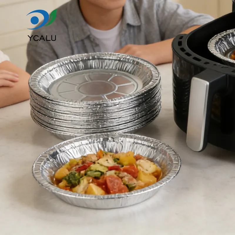 डिस्पोजेबल डिस्क एयर फ्रायर सिल्वर एल्युमिनियम फॉयल फूड कंटेनर