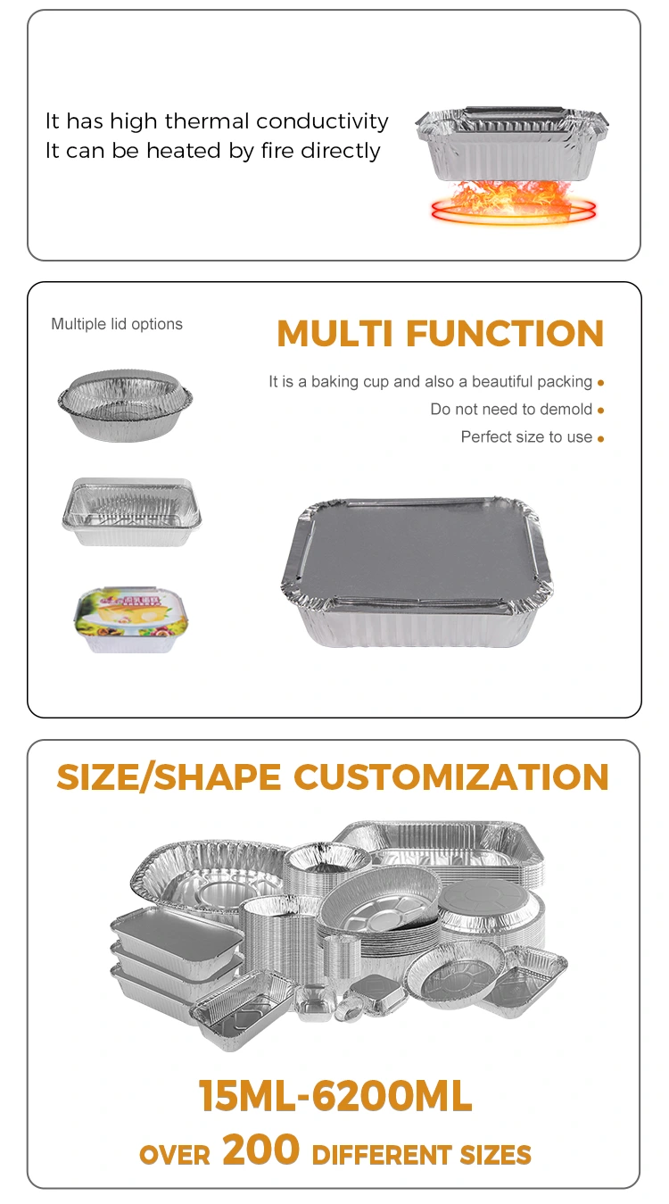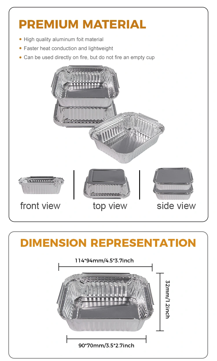 Yunchu एल्यूमीनियम फ़ॉइल आपूर्तिकर्ता के डिस्पोजेबल फ़ॉइल बॉक्स बारबेक्यू सिल्वर एल्यूमीनियम पन्नी कंटेनरों को उच्च गुणवत्ता वाले 8011-0 खाद्य ग्रेड सिल्वर सामग्री के साथ निर्मित किया जाता है। यह उत्पाद विभिन्न प्रकार के खाद्य पदार्थों के लिए डिज़ाइन किया गया है जैसे कि ग्रिलिंग, बेकिंग, एयर फ्राइर्स और प्री-निर्मित व्यंजन, विशेष रूप से उन लोगों के लिए जो बाहरी बारबेक्यू और पारिवारिक समारोहों का आनंद लेते हैं।