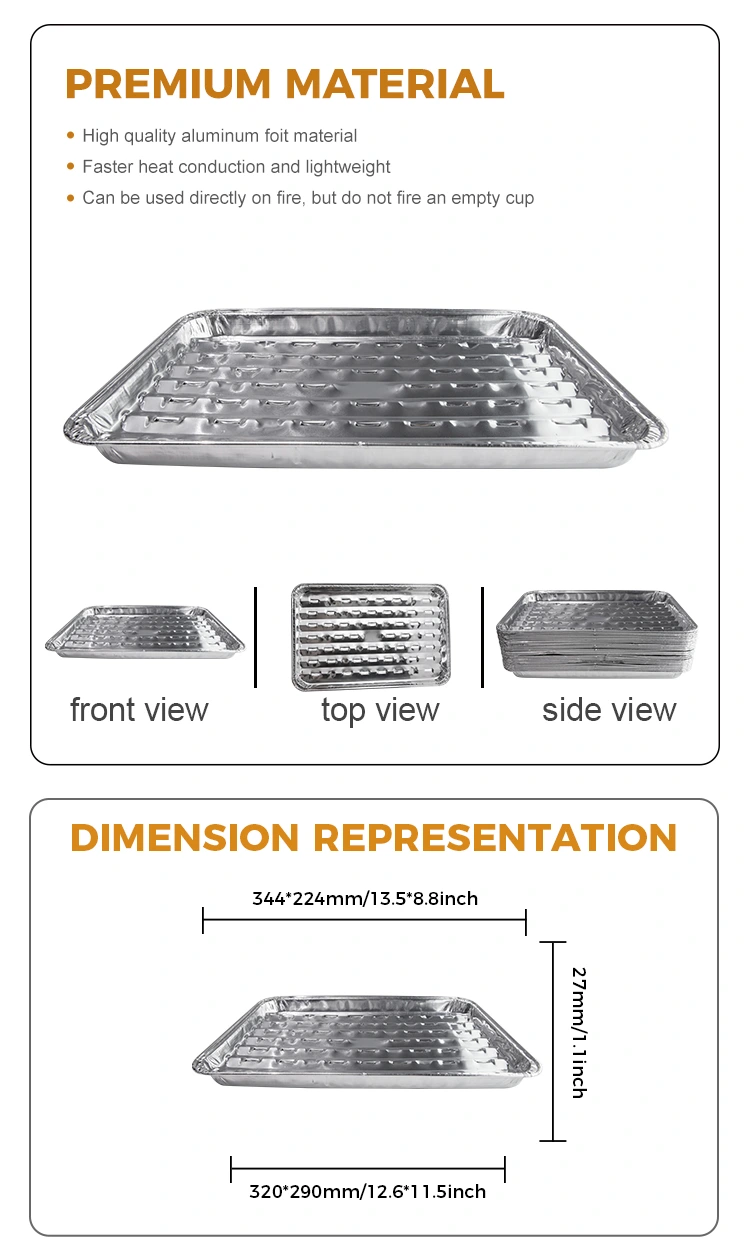 Yunchu एल्यूमीनियम फ़ॉइल डिस्पोजेबल ग्रिल पैन, चारकोल ग्रिलिंग, होल डिज़ाइन स्मोकलेस बारबेक्यू, रैपिड हीट कंडक्शन और यूनिफ़ॉर्म हीटिंग, क्लीन और हाइजीनिक बारबेक्यू, बारबेक्यू और डिनर आवश्यक ग्रीस, एकीकृत मोल्डिंग, दीवार की सतह एक दर्पण की तरह चिकनी और साफ होती है, दोनों सुंदर और व्यावहारिक, पैकेज की समग्र बनावट में काफी सुधार कर सकते हैं, विशेष रूप से उन लोगों के लिए उपयुक्त हैं जो खाद्य सेवा दृश्यों के विवरण और सेवा गुणवत्ता पर ध्यान देते हैं।