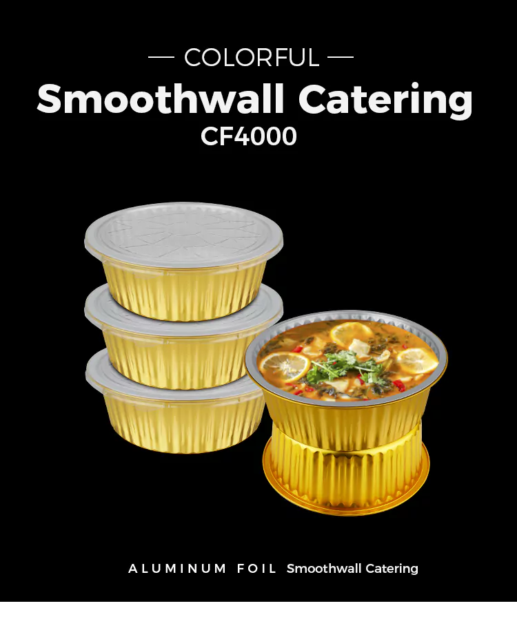 • डिस्पोजेबल गोल बड़ी क्षमता वाले सोने के एल्युमीनियम फॉयल कंटेनरडिस्पोजेबल गोल बड़ी क्षमता वाले सोने के एल्युमीनियम फॉयल कंटेनर