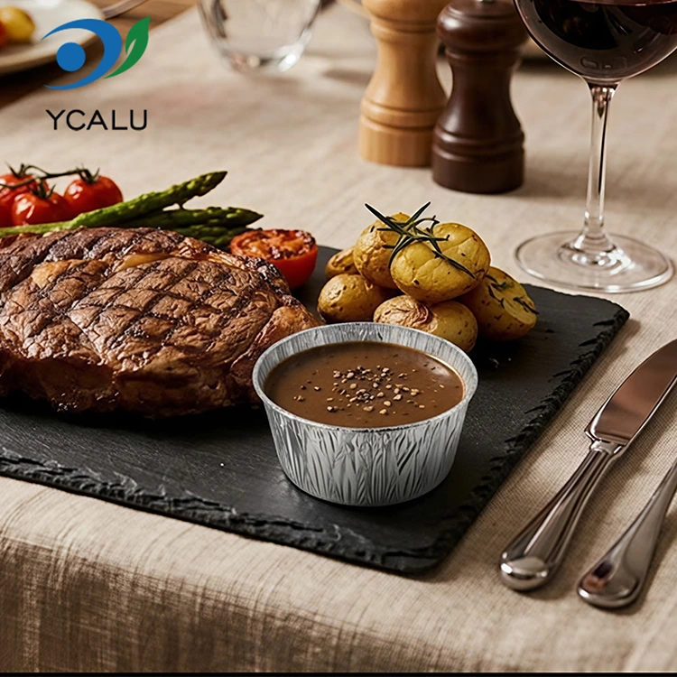 डिस्पोजेबल राउंड सॉस सिल्वर एल्युमिनियम फॉयल खाद्य कंटेनर