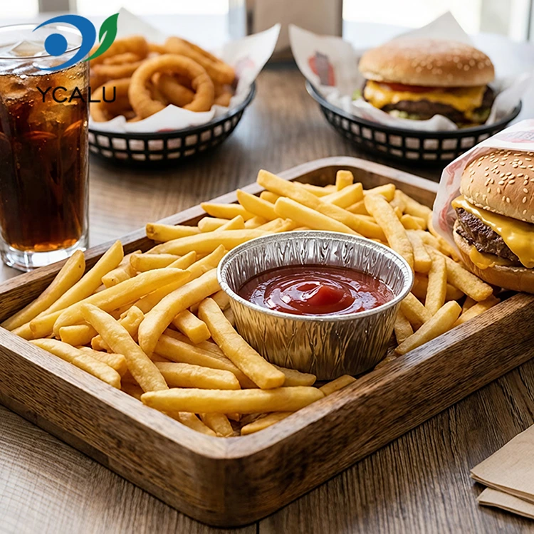 यूंचू एल्युमीनियम फॉयल आपूर्तिकर्ता डिस्पोजेबल राउंड सॉस एयर फ्रायर सिल्वर एल्युमीनियम फॉयल कंटेनर खाद्य ग्रेड एल्युमीनियम फॉयल सामग्री, कोई गंध नहीं, कोई भारी धातु अवशेष नहीं, खाद्य संपर्क मानकों, उच्च शुद्धता और स्थिर रासायनिक गुणों का अनुपालन करता है। भले ही यह अम्लीय सॉस से भरा हो और उच्च तापमान पर गरम किया गया हो, यह हानिकारक पदार्थ नहीं छोड़ेगा, और भोजन के सीधे संपर्क में आने पर आप पूरी तरह से सुरक्षित महसूस कर सकते हैं। उत्पाद ने एफडीए खाद्य ग्रेड प्रमाणीकरण पारित कर दिया है और एफडीए 21 सीएफआर संबंधित मानकों का सख्ती से पालन करता है, पेशेवर प्रवासन परीक्षण और भारी धातु का पता लगाने के बाद, सीसा और कैडमियम जैसे हानिकारक पदार्थों की सामग्री सुरक्षा सीमा से काफी नीचे है, और योग्यताएं पूरी हो गई हैं। चाहे वह घरेलू उपयोग के लिए हो या व्यावसायिक उपयोग के लिए, आप मन की शांति के साथ चयन कर सकते हैं। मांस को मैरीनेट करने के लिए सॉस, सब्जियों के लिए सलाद ड्रेसिंग और पकौड़ी डुबाने के लिए सिरके के बर्तनों को अलग करने के लिए इसका उपयोग करें। भाग बर्बाद हुए बिना बिल्कुल सही हैं। यह गंध स्थानांतरण से भी बच सकता है, और इसे बिना जगह घेरे रेफ्रिजरेटर में बड़े करीने से संग्रहीत किया जा सकता है। टेकअवे व्यापारी इसका उपयोग सॉस को स्टोर करने के लिए करते हैं, जो सीलबंद और लीक-प्रूफ होते हैं, और ग्राहकों को साफ-सुथरे ढंग से वितरित किए जाते हैं। चाहे वह केचप हो, मीठी मिर्च की चटनी हो, या गाढ़ी तिल की चटनी हो, भोजन के रिसाव और गंदा होने की कोई शर्मिंदगी नहीं होगी। यहां तक ​​कि आउटडोर पिकनिक और कैंपिंग के लिए भी, आप कुछ अपने साथ ला सकते हैं और इसका उपयोग डिपिंग सॉस रखने के लिए कर सकते हैं। यह हल्का है और जगह नहीं लेता। उपयोग के बाद आप इसे सीधे फेंक सकते हैं। आपको गंदे कंटेनरों का एक गुच्छा घर वापस ले जाने की ज़रूरत नहीं है। यह मुख्यतः सहजता और परेशानी-मुक्ति के बारे में है।