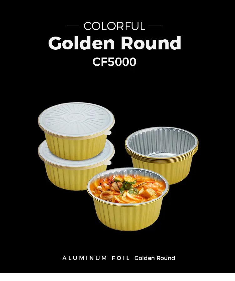 डिस्पोजेबल सील योग्य गोल्डन राउंड एल्यूमीनियम पन्नी कंटेनर