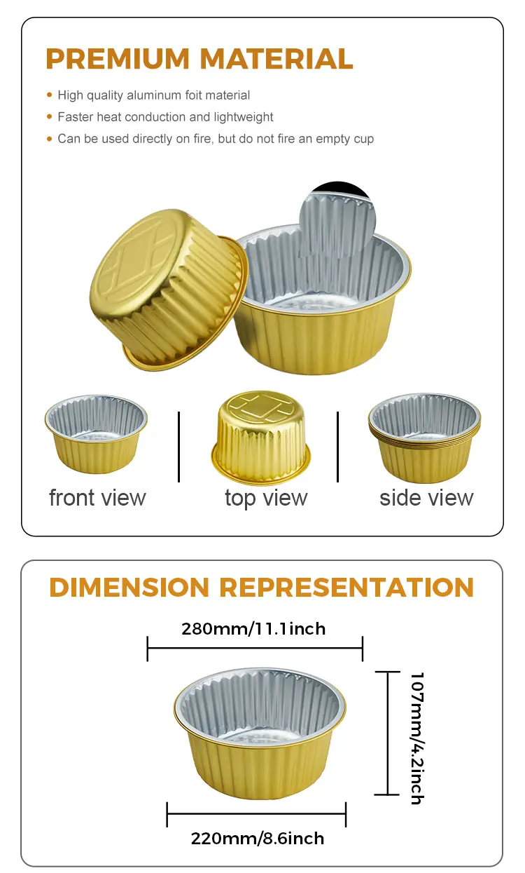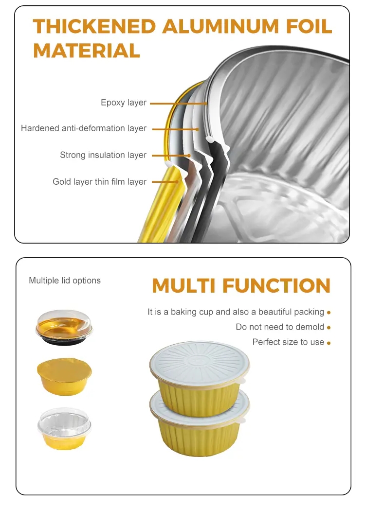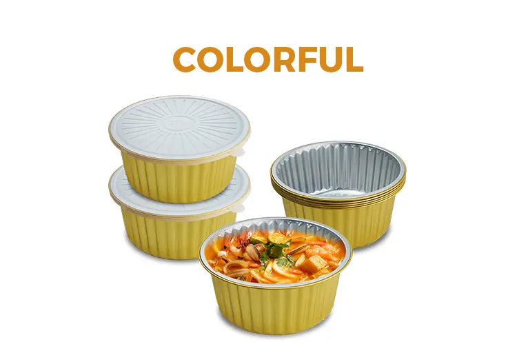 • डिस्पोजेबल सील योग्य गोल्डन राउंड एल्यूमीनियम पन्नी कंटेनरडिस्पोजेबल सील योग्य गोल्डन राउंड एल्यूमीनियम पन्नी कंटेनर