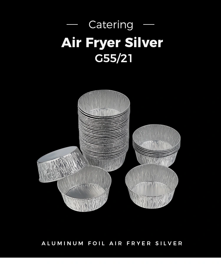 डिस्पोजेबल सिल्वर राउंड डिप एयर फ्रायर सिल्वर एल्युमिनियम फॉयल फूड कंटेनर