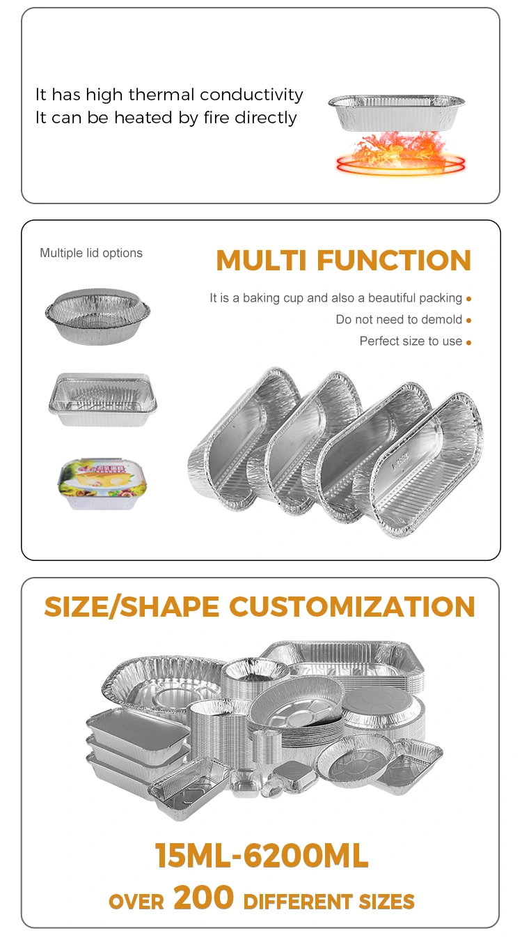 Yunchu एल्यूमीनियम पन्नी आपूर्तिकर्ता अंडाकार एयर फ्रायर बेकिंग सिल्वर एल्यूमीनियम पन्नी कंटेनर एक प्रकार का कंटेनर है जिसका उपयोग स्टीमिंग, उबलते, बेकिंग, बेकिंग और अन्य उद्देश्यों के लिए किया जा सकता है, और इसका उपयोग सॉस, सूई सॉस, छोटे मसालों और बेकिंग नमूने के नमूने के लिए किया जा सकता है। 8011-0 प्रकार के एल्यूमीनियम पन्नी सामग्री, तन्यता प्रतिरोध और संक्षारण प्रतिरोध में अच्छा बढ़ाव होता है, मोटा एल्यूमीनियम पन्नी सामग्री, टिकाऊ और इच्छाशक्ति को तोड़ने के लिए आसान नहीं है, हेमिंग, फ्रंट और रियर अर्धवृत्त डिजाइन हाथों को चोट नहीं पहुंचाता है, एकीकृत मोल्डिंग, दीवार की सतह एक दर्पण के रूप में चिकनी है, एक प्रकार की विविधता के लिए उपयुक्त है।