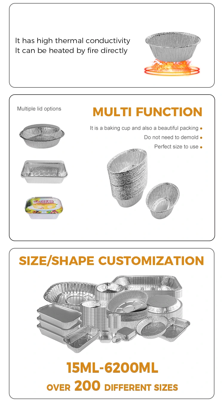 विशेषताएं: सफाई के बिना स्वस्थ और पर्यावरण के अनुकूल, विभिन्न प्रकार के परिवार बनाना, छोटे व्यंजनों को पकाना, परिवारों और बेकरी की पसंद है, एल्यूमीनियम पन्नी सामग्री सुरक्षित और स्वच्छ है, कोई सफाई नहीं है, एक खुली लौ पर पकाया जा सकता है, भोजन बनाने के लिए सुविधाजनक है।
