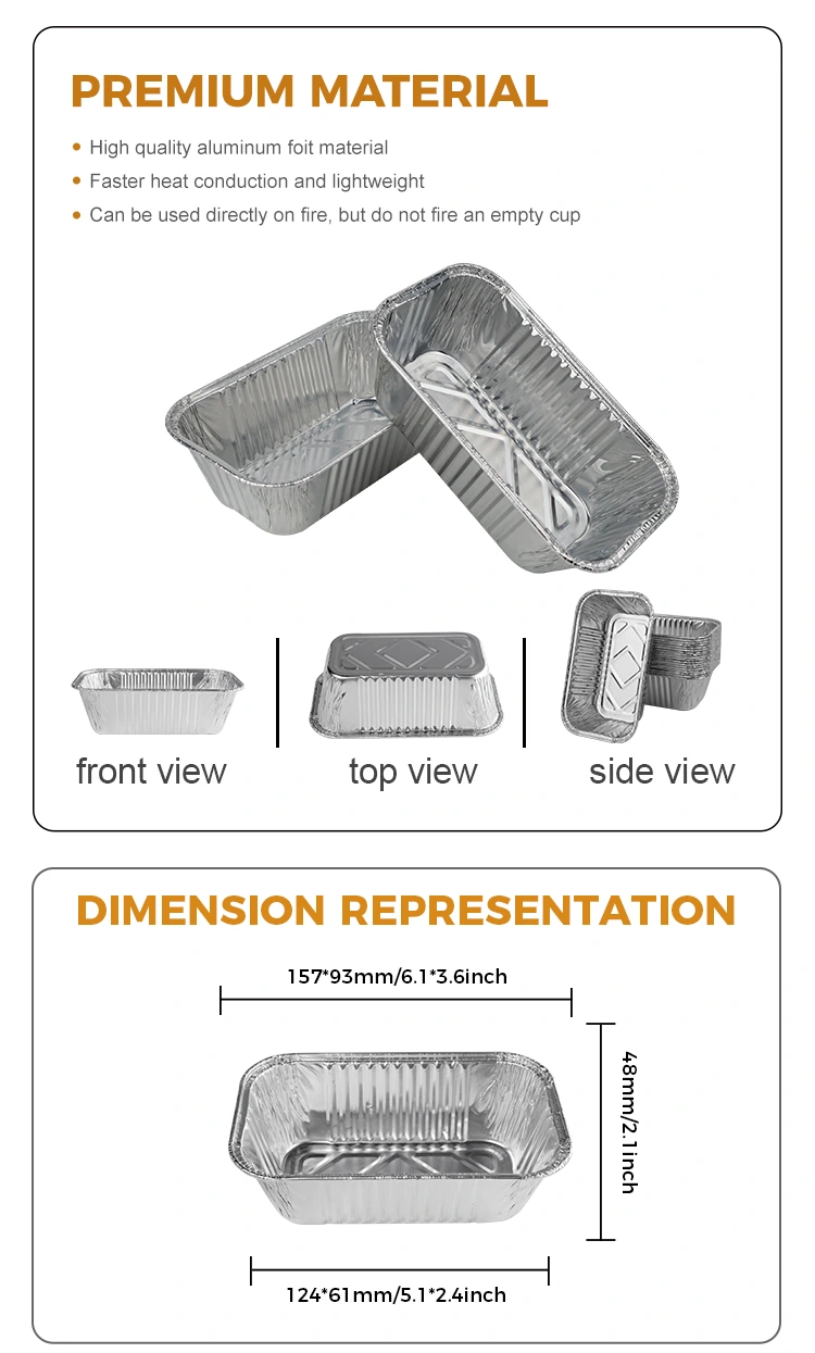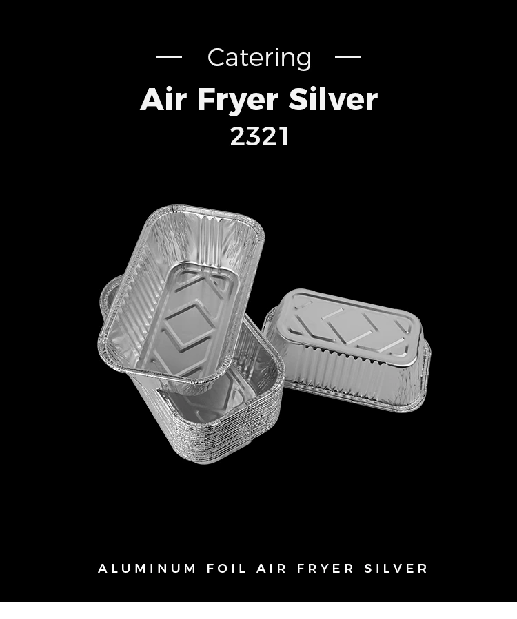 आयताकार एयर फ्रायर ग्रिल सिल्वर एल्यूमीनियम पन्नी कंटेनर