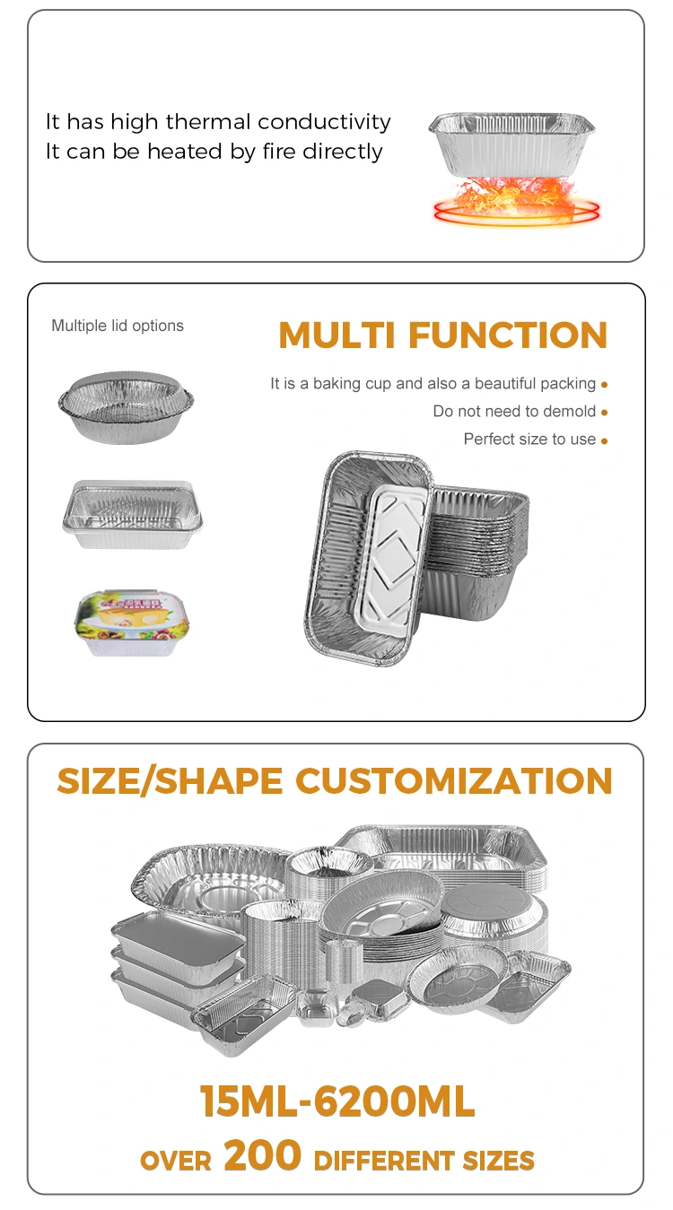 विशेषताएं: सफाई के बिना स्वस्थ और पर्यावरण के अनुकूल, विभिन्न प्रकार के परिवार बनाना, छोटे व्यंजनों को पकाना, परिवारों और बेकरी की पसंद है, एल्यूमीनियम पन्नी सामग्री सुरक्षित और स्वच्छ है, कोई सफाई नहीं है, एक खुली लौ पर पकाया जा सकता है, भोजन बनाने के लिए सुविधाजनक है।