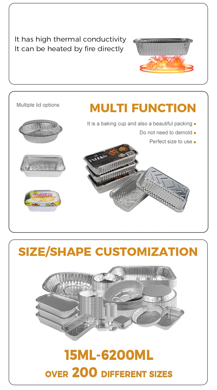 Yunchu एल्यूमीनियम पन्नी आपूर्तिकर्ता, आयताकार बारबेक्यू मोटा सिल्वर एल्यूमीनियम पन्नी कंटेनर, बारबेक्यू, हॉट पॉट, बेकिंग, टेकअवे पैकेजिंग के लिए एक अच्छा सहायक है, खाना पकाने के कई प्रकार के खाना पकाने के कौशल को एक बॉक्स में किया जा सकता है, विभिन्न प्रकार के विभिन्न प्रकार के पॉट्स और उपकरण, सीन्स, सीन्स और विनिर्देशों को पूरा करने के लिए। अनुप्रयोग, गर्मी और तेल प्रतिरोध, आसान बेकिंग, आउटडोर बारबेक्यू, अस्थायी कटोरे आग से डरते नहीं हैं, जब उपयोग करते हैं, तो भोजन या सूप लगाने की आवश्यकता होती है, पानी के बिना सूखने की आवश्यकता होती है, घरेलू ओवन साफ ​​और सुविधाजनक होते हैं जो व्यंजनों को दूर करने के लिए होते हैं।