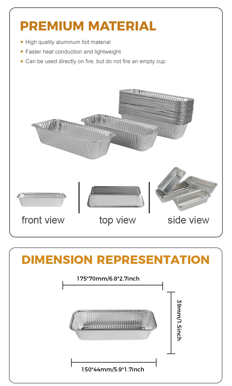 यंचू एल्यूमीनियम पन्नी आपूर्तिकर्ता द्वारा प्रदान किए गए आयताकार ब्रेड ट्रे सिल्वर एल्यूमीनियम पन्नी कंटेनर खाद्य-ग्रेड सामग्री से बना है और विभिन्न प्रकार के आवेदन परिदृश्यों के लिए उपयुक्त है। यह उत्पाद विशेष रूप से ग्रिलिंग और बेकिंग उद्देश्यों के लिए उपयुक्त है, जैसे कि रोटी या बेकिंग की लंबी रोटियां बनाना। चाहे वह चारकोल ग्रिलिंग के लिए हो या टेकअवे डिलीवरी बॉक्स के रूप में, यह उपयोग के लिए एकदम सही है।
