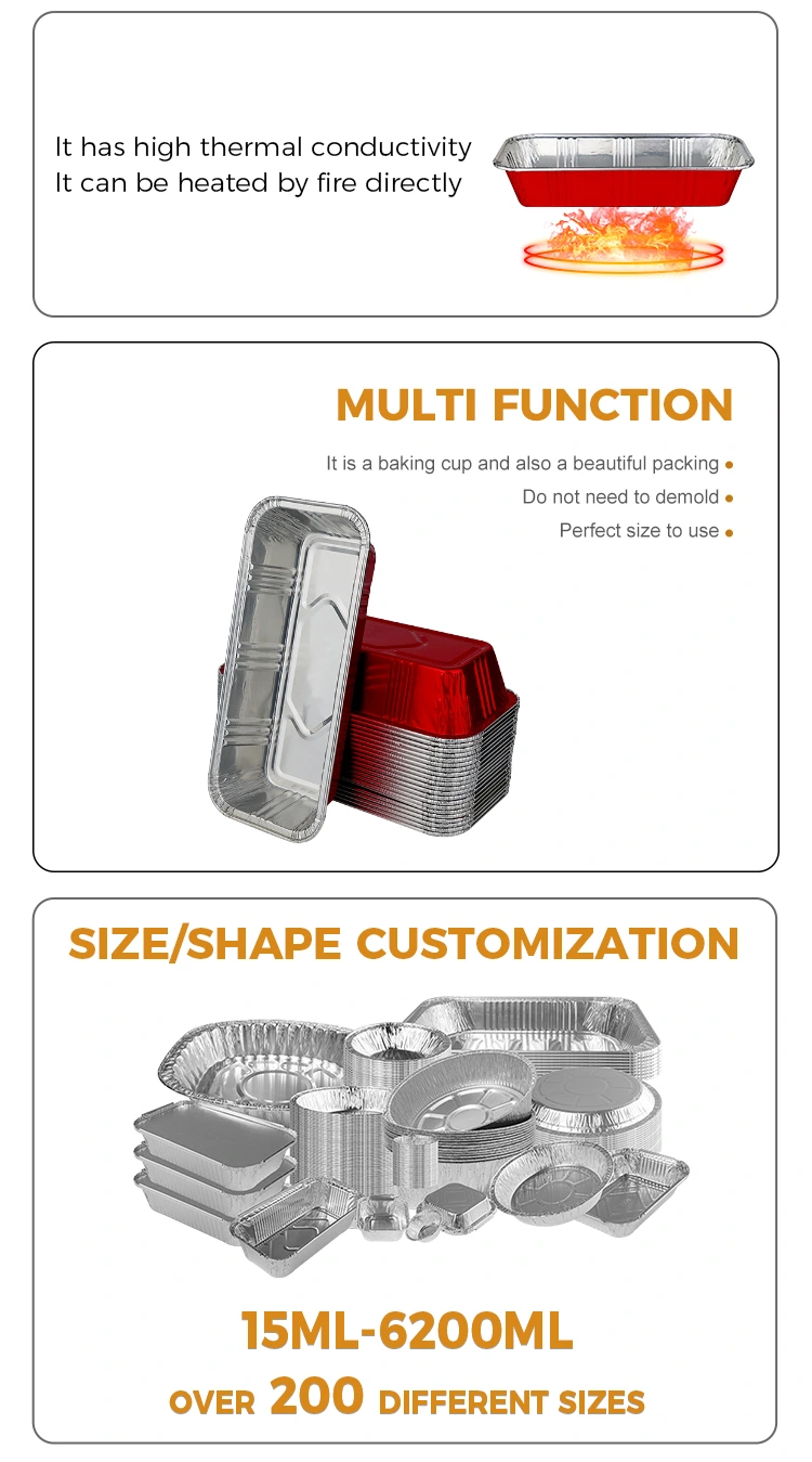 यूंचू एल्युमीनियम फॉयल आपको उच्च गुणवत्ता वाले आयताकार लाल बेकरी कैटरिंग सिल्वर एल्युमीनियम फॉयल कंटेनर प्रदान करता है, जो टिकाऊ और गर्मी प्रतिरोधी होने के लिए डिज़ाइन किए गए हैं, जलने से रोकने के लिए समान रूप से गर्मी का संचालन कर सकते हैं, और ताजा रखने के लिए मजबूत सीलिंग कर सकते हैं।