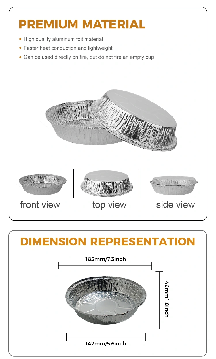 विशेषताएं: एक-टुकड़ा मोल्डिंग गाढ़ा और बेक्ड-रेसिस्टेंट, फूड कॉन्टैक्ट ग्रेड एल्यूमीनियम पन्नी सामग्री को अपनाना, भोजन से संपर्क करने का आश्वासन दिया गया, डिफॉर्म करने में आसान नहीं और लीक नहीं, मजबूत मोटाई, जंग प्रतिरोध, उच्च तापमान प्रतिरोध।