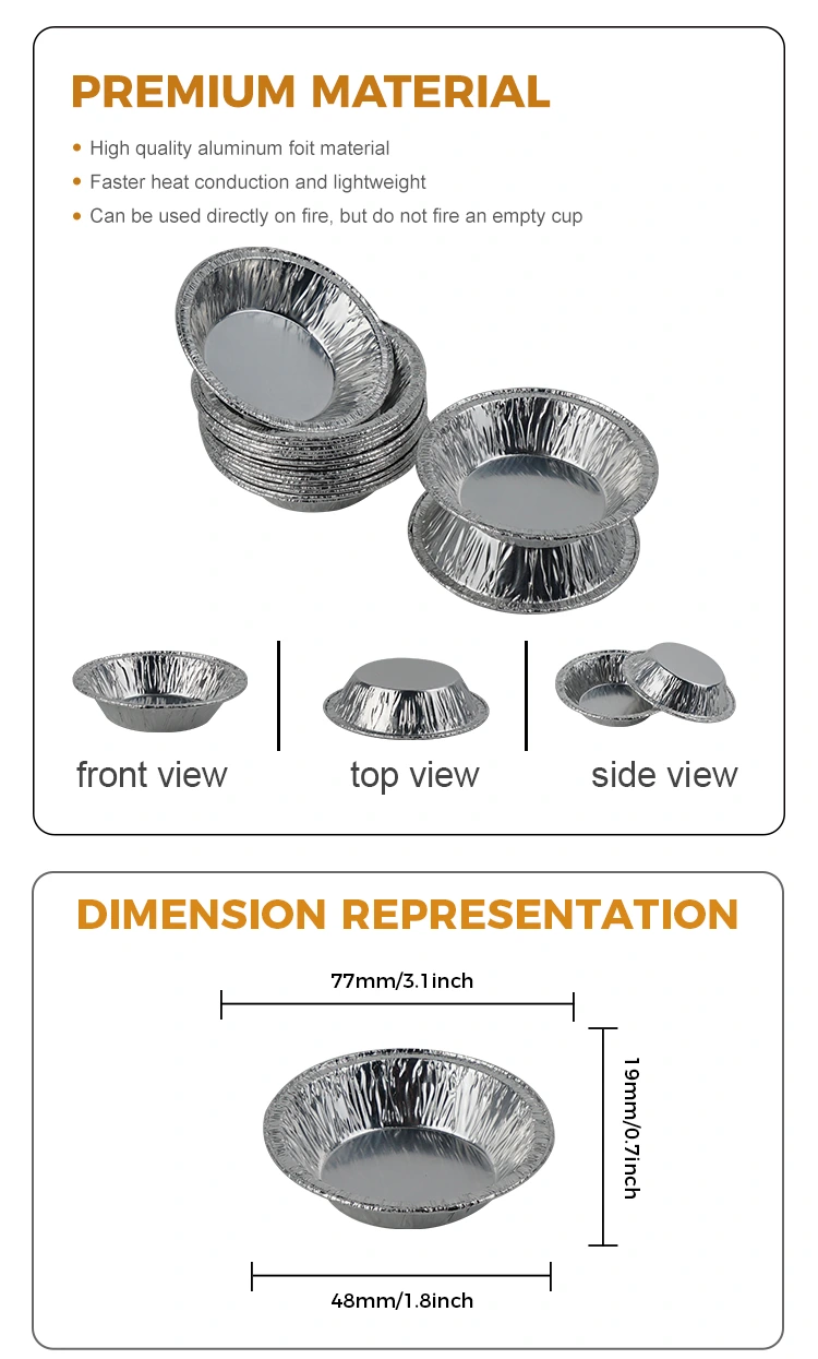 • स्नैक्स सिल्वर एल्यूमीनियम पन्नी फूड कंटेनर के लिए राउंड एग टार्टस्नैक्स सिल्वर एल्यूमीनियम पन्नी फूड कंटेनर के लिए राउंड एग टार्ट