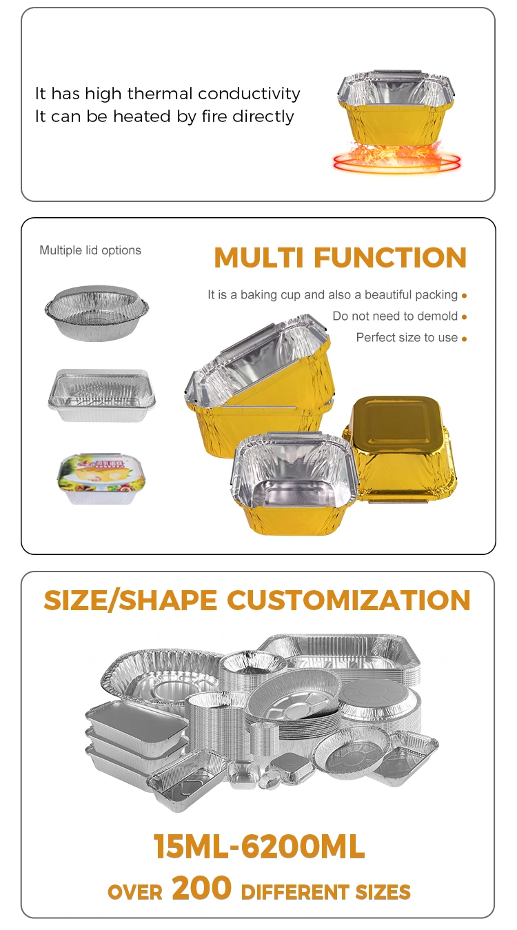 Yunchu एल्यूमीनियम पन्नी आपूर्तिकर्ता द्वारा प्रदान किया गया वर्ग बेकिंग ओवन सिल्वर फ़ॉइल कंटेनर एक रसोई एल्यूमीनियम पन्नी कंटेनर है जो एक एयर फ्रायर में वर्ग केक, बेकिंग कुकीज़, ग्रिलिंग और खाना पकाने के लिए उपयुक्त है। न केवल इसमें एक मामूली क्षमता (95 मिलीलीटर) है जो आसानी से अधिकांश भोजन को पकड़ सकती है, बल्कि यह पूरी तरह से पारदर्शी पालतू पन्नी ढक्कन के साथ प्रभावी रूप से धूल और अन्य दूषित पदार्थों को बाहर रखने के लिए आता है। चिकनी सतह का डिज़ाइन कंटेनरों को ढेर और स्टोर करने में आसान बनाता है, जो मूल्यवान रसोई स्थान को बचाता है।