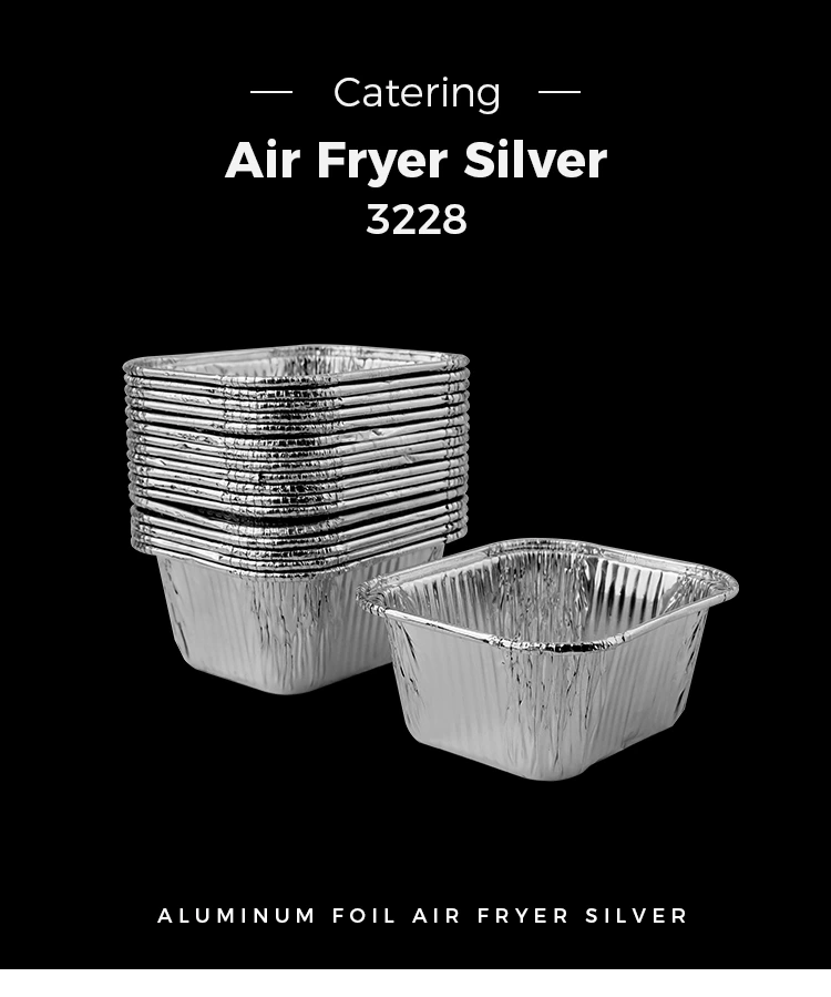स्क्वायर बेकिंग शीट एयर फ्रायर सिल्वर एल्यूमीनियम पन्नी कंटेनर